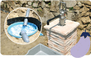 園内に7ヶ所の井戸を設置。その他にも山からの自然水をご利用いただけますので、水の心配はありません。 |